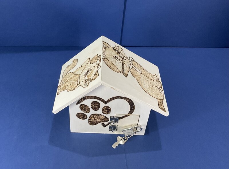 salvadanaio legno a casetta con portina e lucchetto