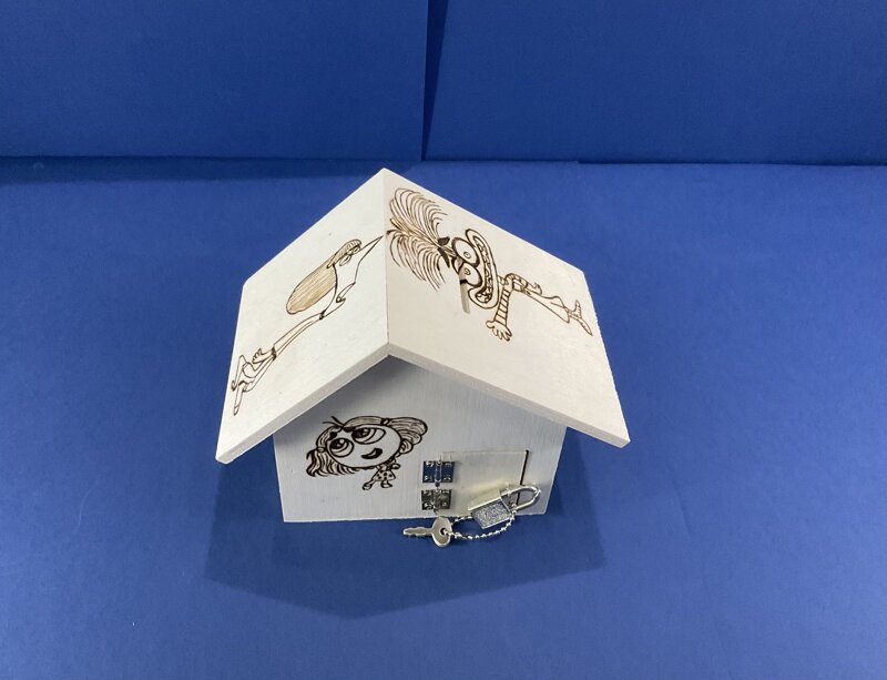 salvadanaio legno a casetta con portina e lucchetto