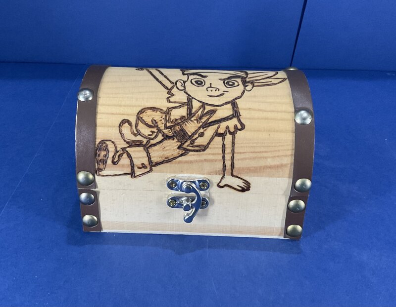 cofanetto bombato legno bande marron disegno pirata con chiusura metallica