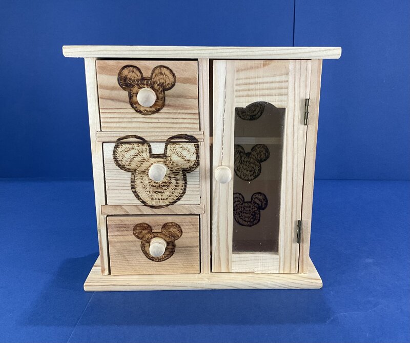 cassettiera legno 3 cassetti 1 anta vetro disegno cartoni animati