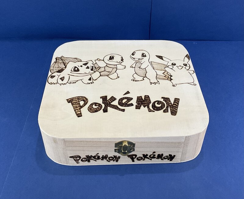 cofanetto legno quadrato disegno cartoni animati con chiusura metallica