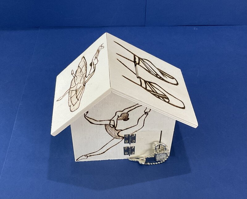 salvadanaio legno a casetta con portina e lucchetto disegno ballerina