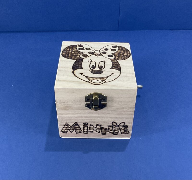 cofanetto legno carillon disegno cartoni animati con musica con chiusura metallica