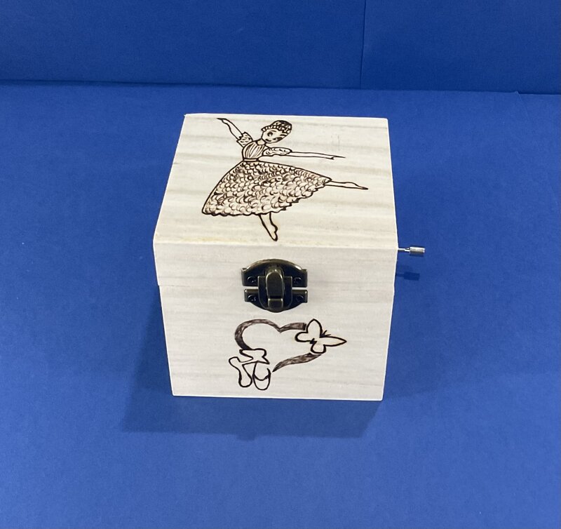 cofanetto legno carillon disegno ballerina con musica con chiusura metallica