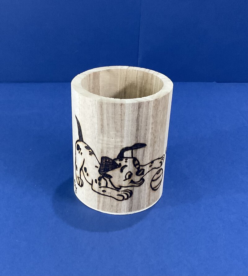 portapenne legno cilindrico disegno cagnolino