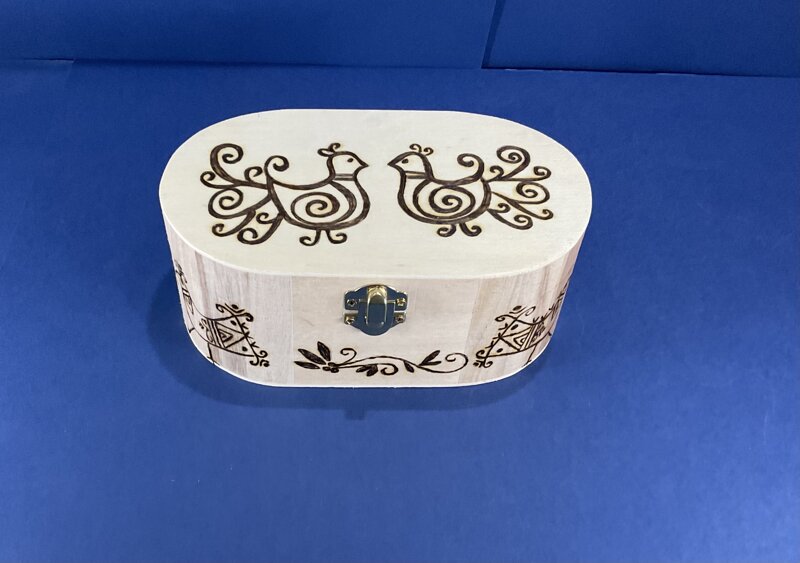 cofanetto legno ovale disegno pavoncelle con chiusura metallica