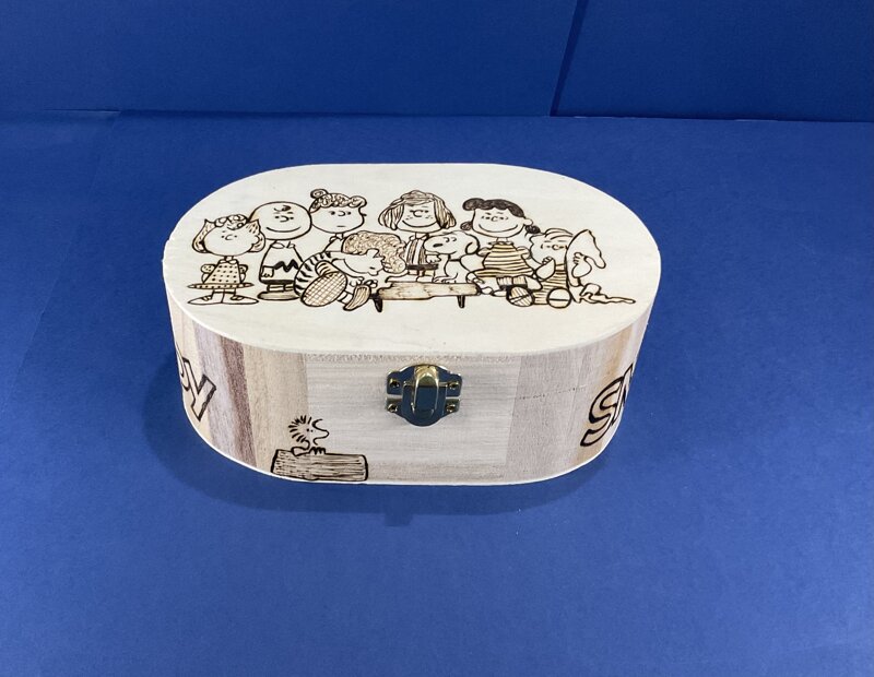 cofanetto legno ovale disegno cartoni animati con chiusura metallica
