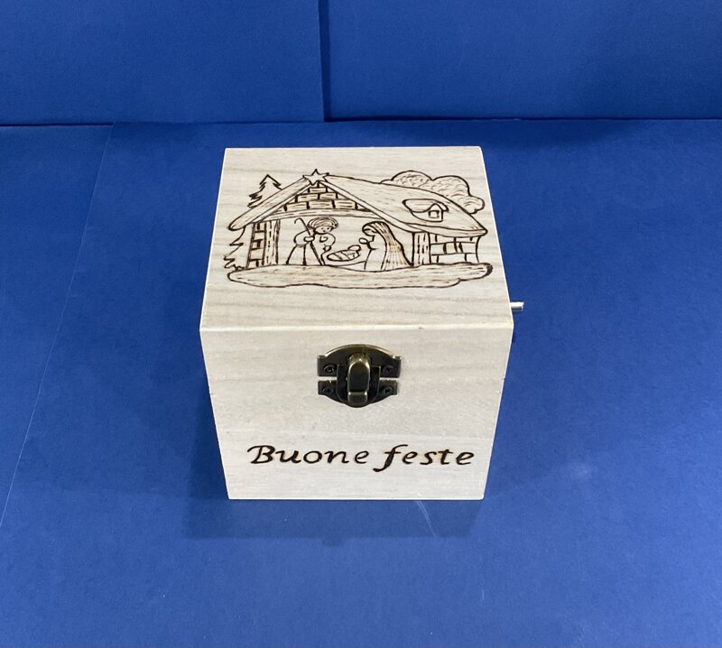 cofanetto legno disegno natalizio musica natalizia con chiusura metallica