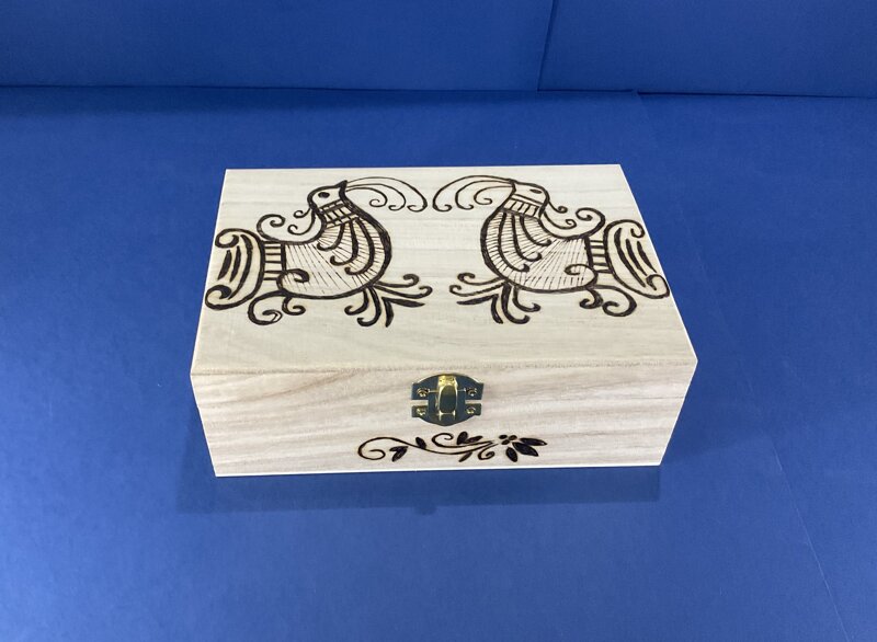 cofanetto legno disegno pavoncelle con chiusura metallica