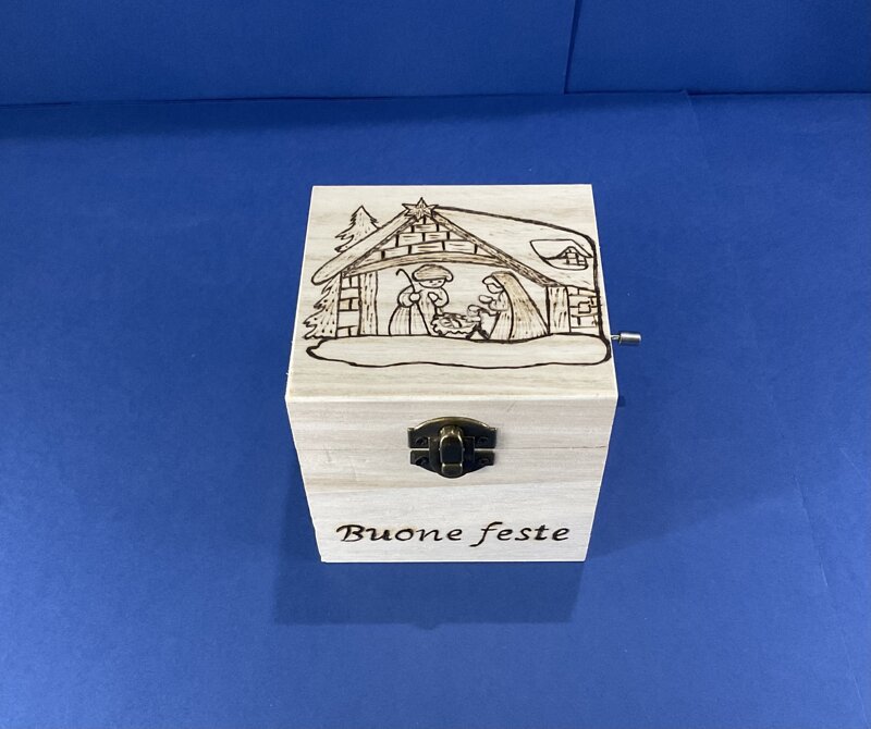 cofanetto legno carillon disegno natalizio musica natalizia con chiusura metallica