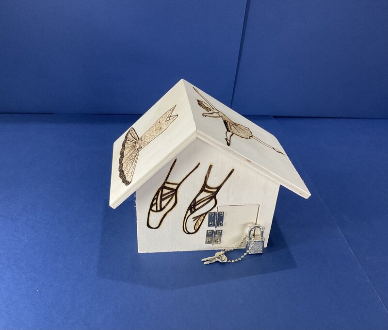 salvadanaio legno a casetta con portina e lucchetto disegno ballerina