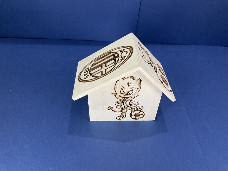 salvadanaio legno a casetta con portina e lucchetto disegno calcio
