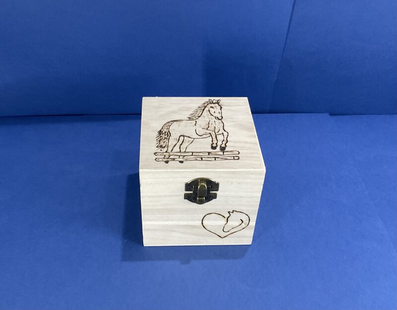 cofanetto legno carillon disegno cavallo musica varia con chiusura metallica