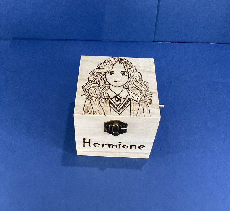 cofanetto legno carillon disegno cartoni animati musica HP con chiusura metallica