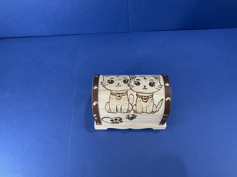 cofanetto legno a scrigno finitura marron disegno gattini con chiusura metallica