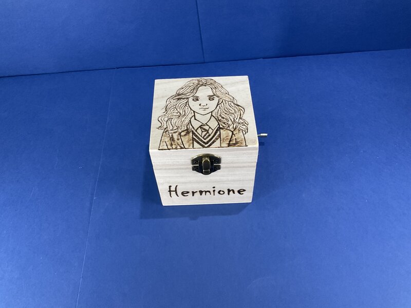 cofanetto legno carillon disegno cartoni animati musica HP con chiusura metallica
