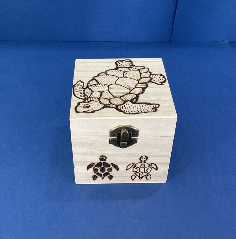 cofanetto legno carillon disegno tartaruga musica varia con chiusura metallica