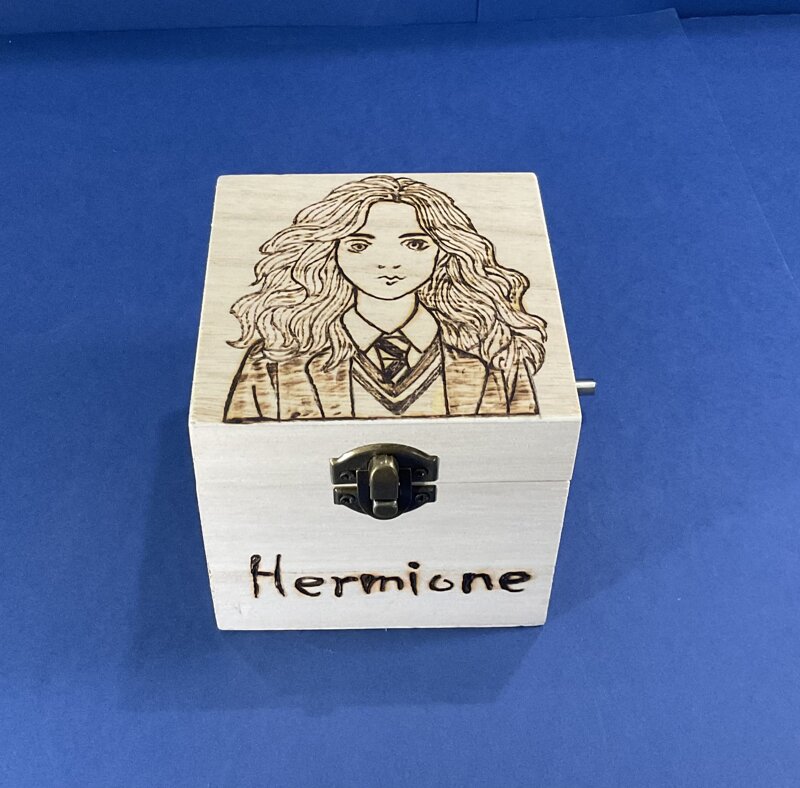 cofanetto legno carillon disegno cartoni animati musica HP con chiusura metallica
