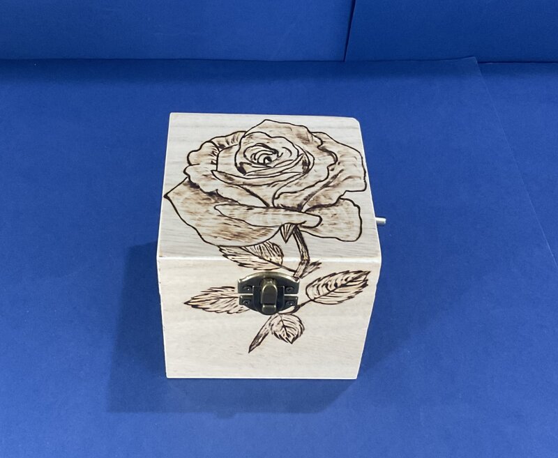 cofanetto legno carillon disegno floreale musica varia con chiusura metallica