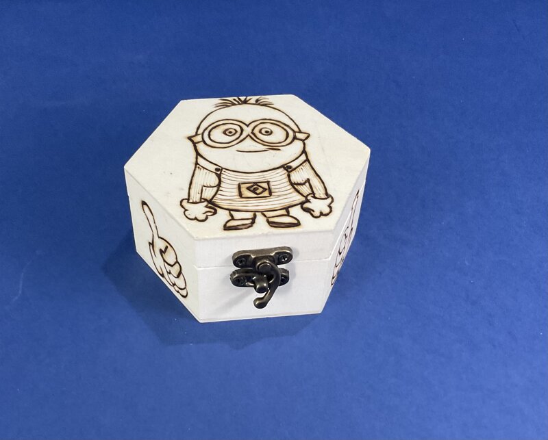 cofanetto esagonale legno disegno cartoni animati con chiusura metallica