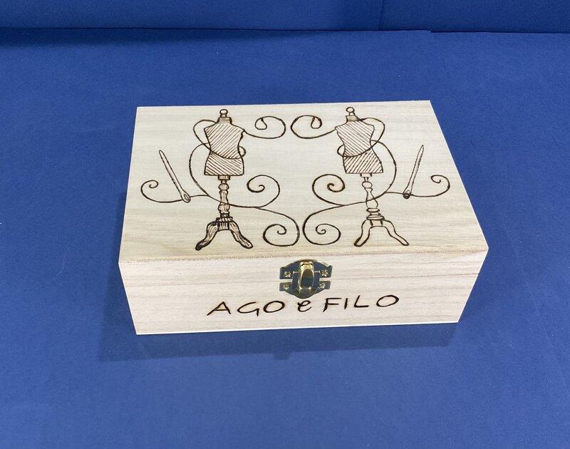 cofanetto legno disegno cucito con chiusura metallica