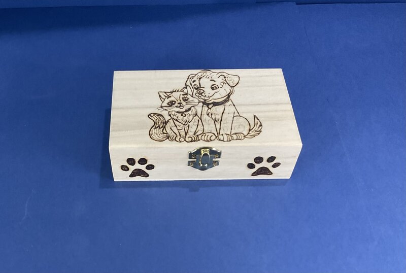cofanetto legno disegno gattino cagnolino con chiusura metallica