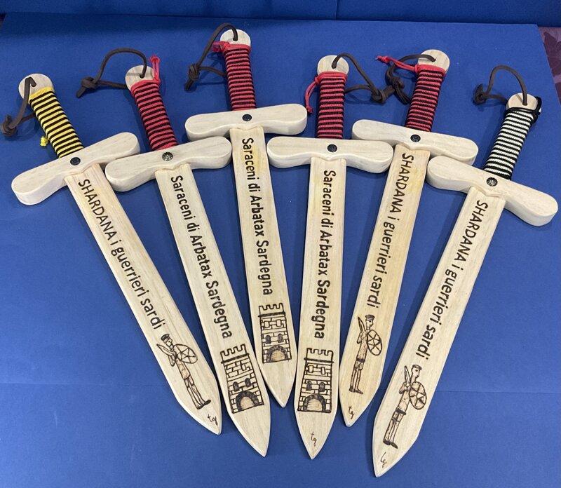 spada legno impugnatura corda disegno Shardana con laccio vendita singola