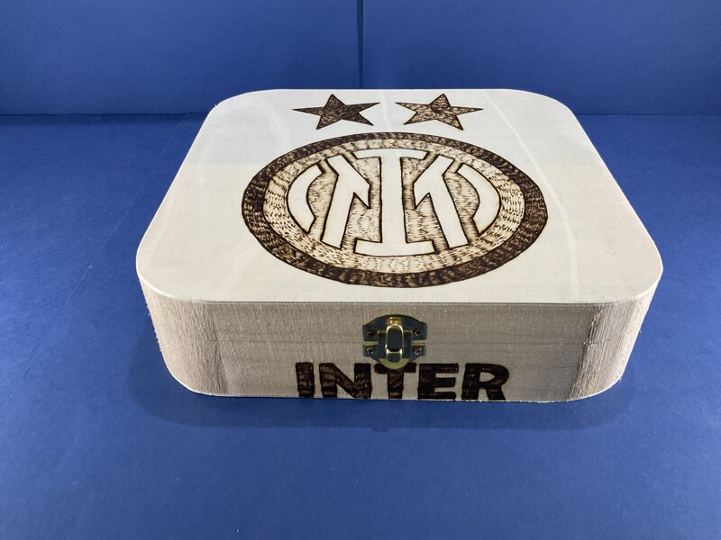 cofanetto legno disegno calcio con chiusura metallica
