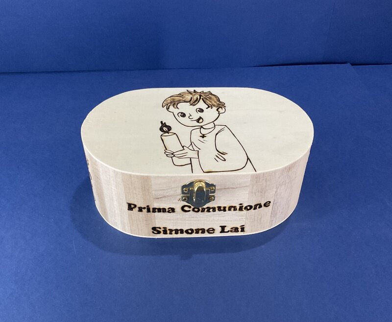 cofanetto ovale legno disegno personalizzato con chiusura metallica
