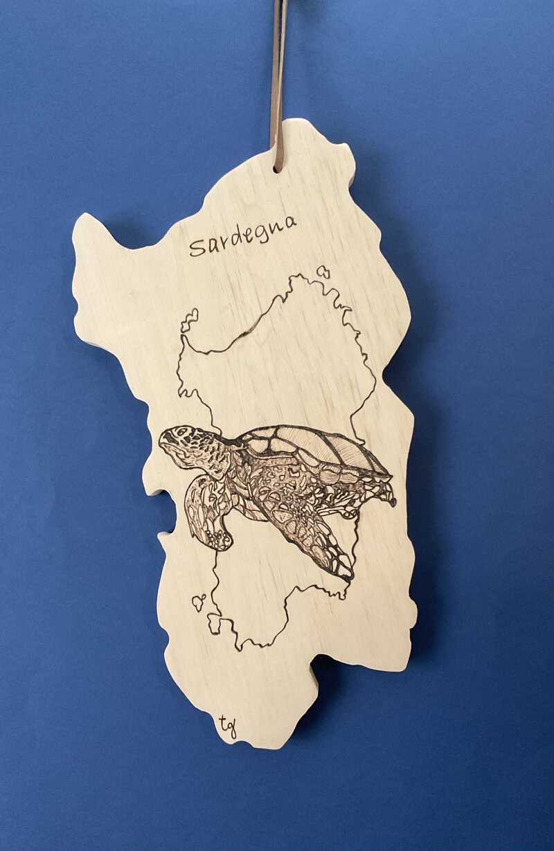 Sardegna legno disegno tartaruga con laccio