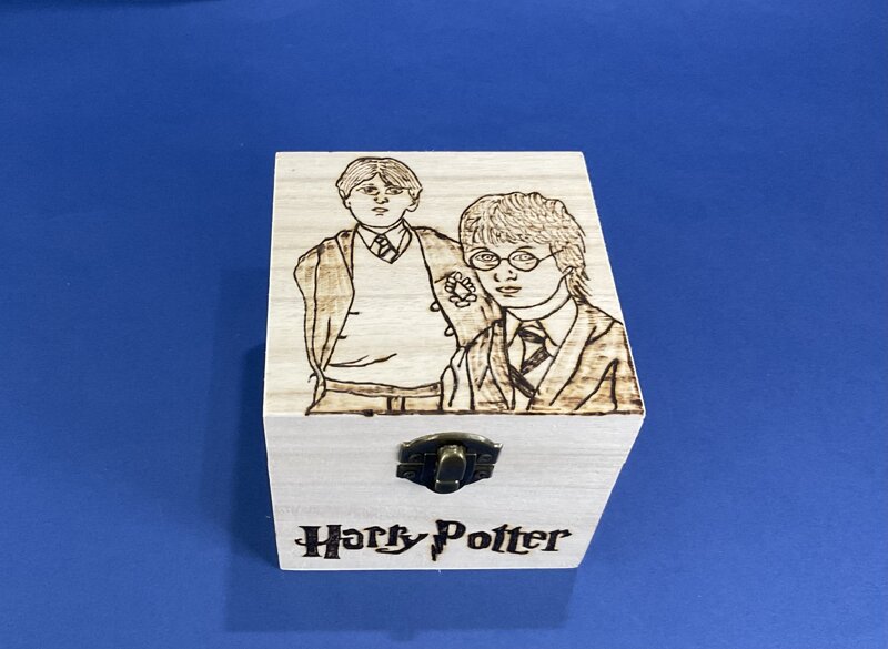cofanetto legno carillon musica HP disegno cartoni animati con chiusura metallica