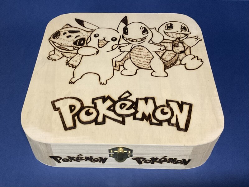 cofanetto legno, disegno cartoni animati, con chiusura metallica.