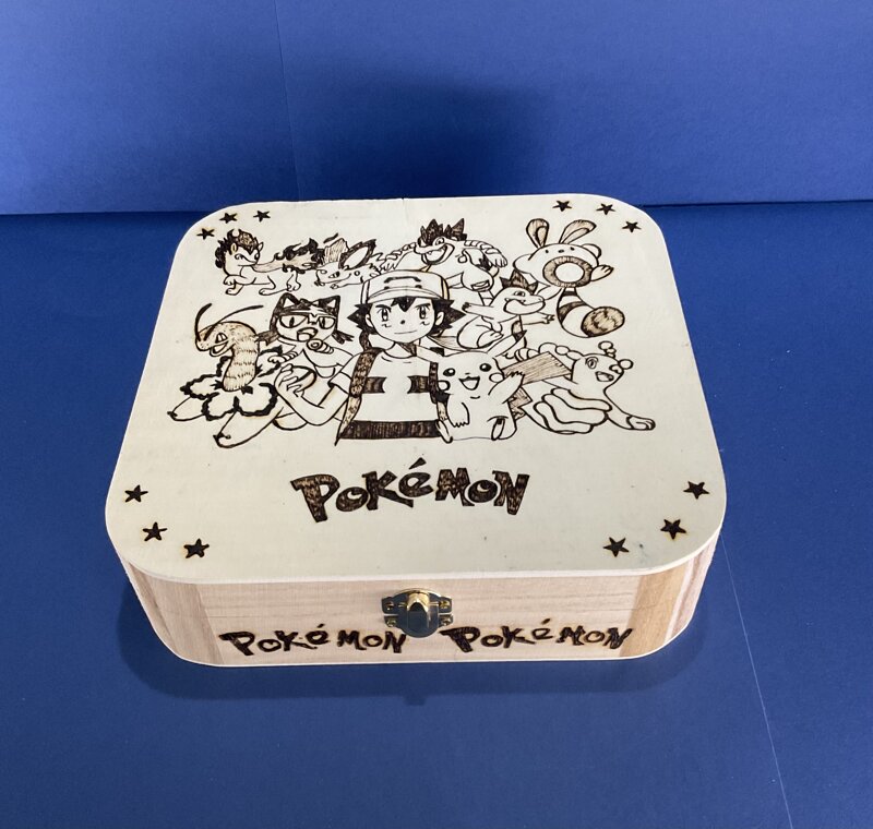 cofanetto legno, disegno cartoni animati, con chiusura metallica.