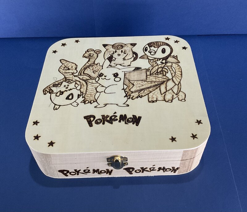 cofanetto legno, disegno cartoni animati, con chiusura metallica.