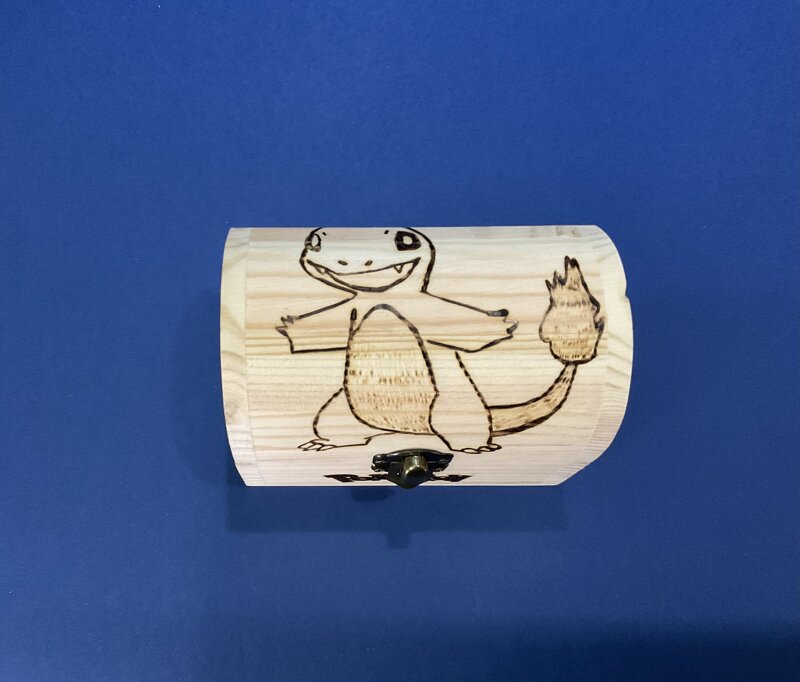 cofanetto legno a scrigno, disegno cartoni animati, con chiusura metallica.