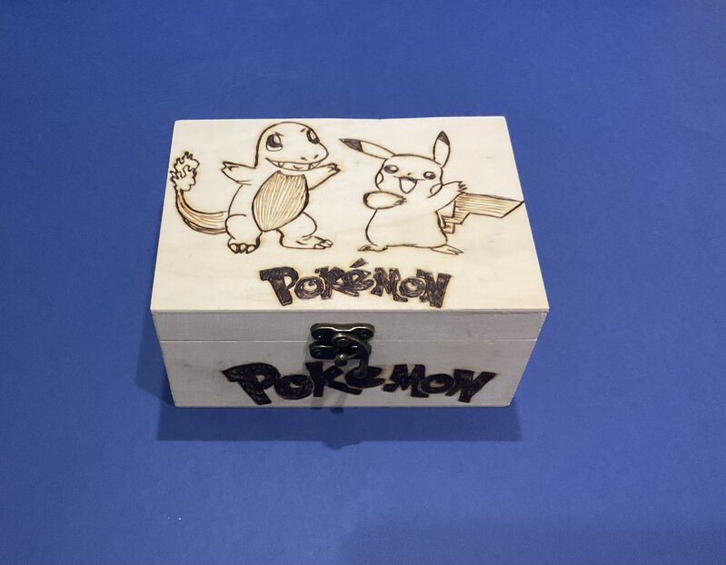 cofanetto legno, disegno cartoni animati, con chiusura metallica.