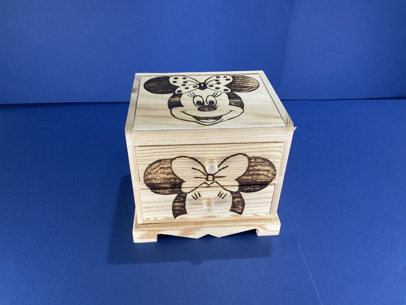 cassettiera legno, disegno cartoni animati, con 2 cassetti e ribalta con specchio.