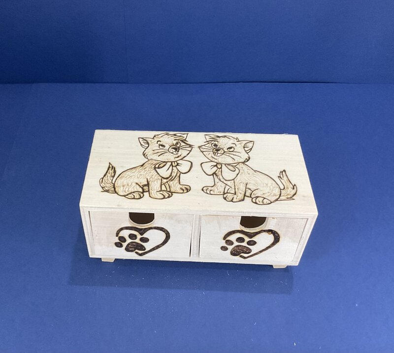 cassettiera legno 2 cassettini, disegno 2 gattini.