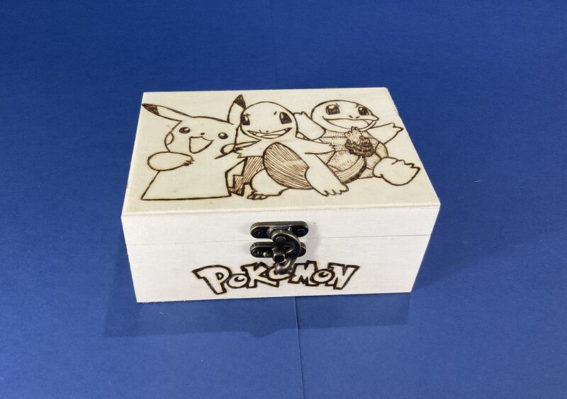 cofanetto legno, disegno cartoni animati, con chiusura metallica.