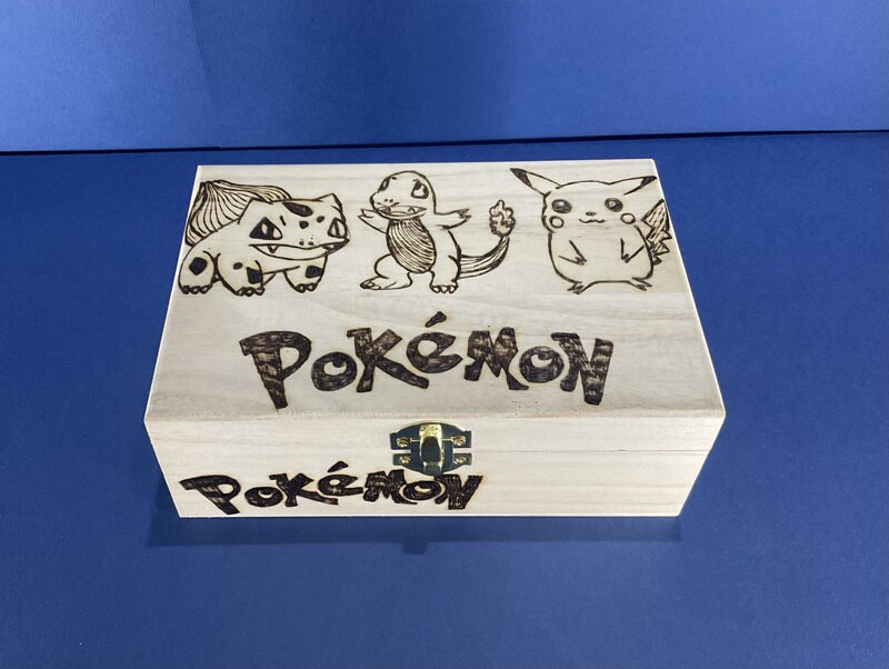 cofanetto legno, disegno cartoni animati, con chiusura metallica.
