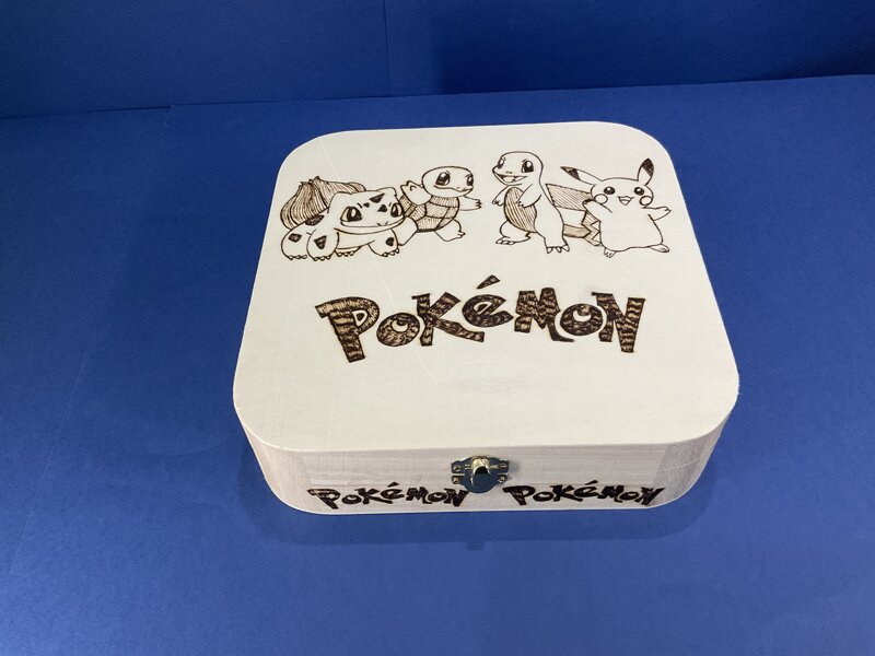 cofanetto legno, disegno cartoni animati, con chiusura metallica.
