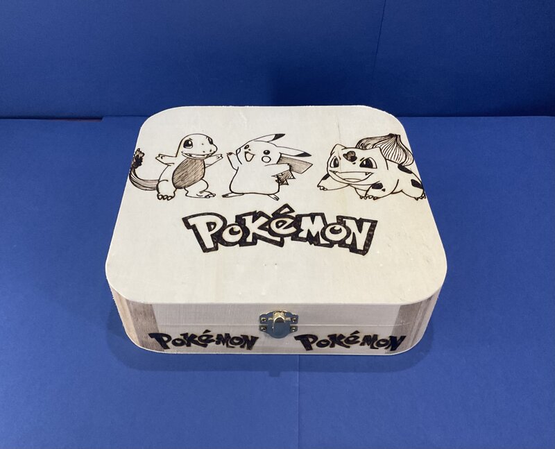 cofanetto legno, disegno cartoni animati, con chiusura metallica.