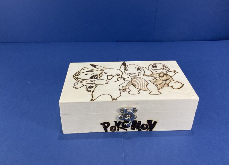 cofanetto legno, disegno cartoni animati, con chiusura metallica.