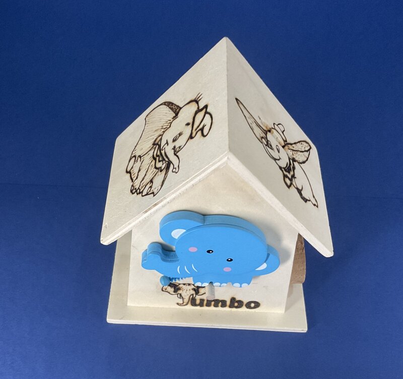 salvadanaio, disegno elefantino, tappo laterale.