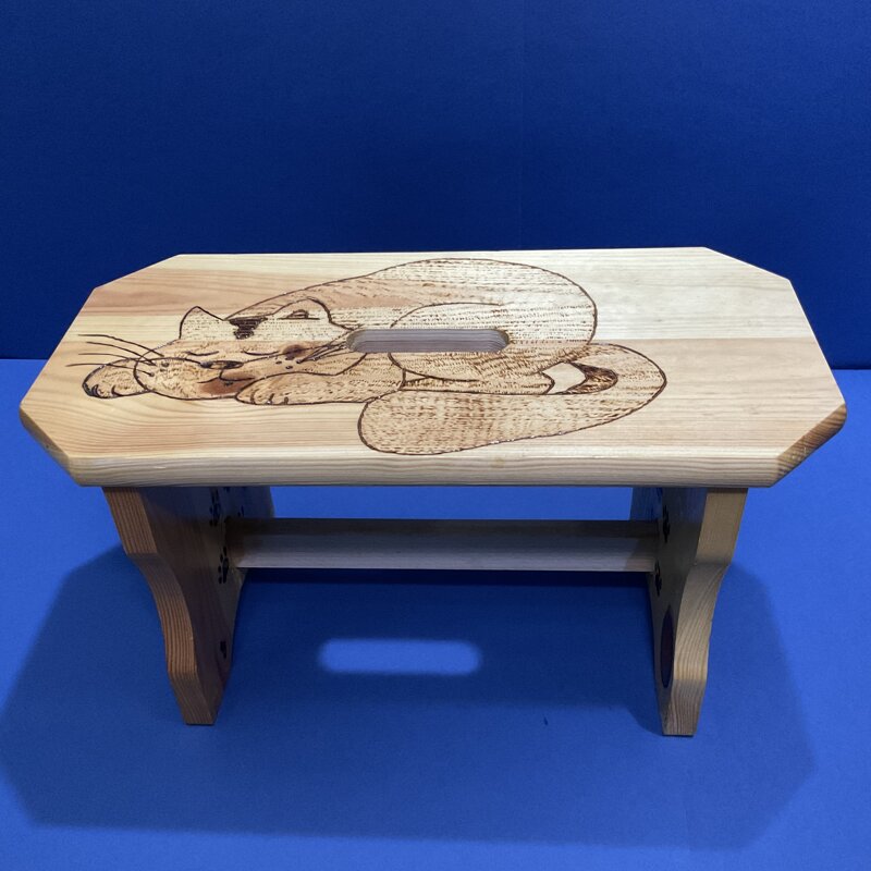 sgabello legno, disegno gattino.