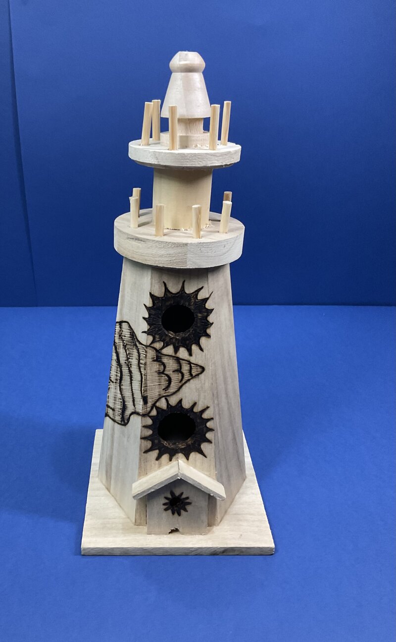 faro legno, disegno murice e sole.