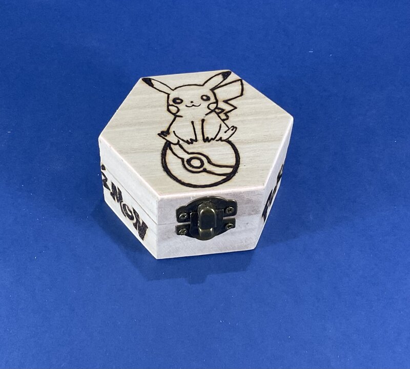 cofanetto legno esagonale piccolo disegno cartoni animati con chiusura metallica