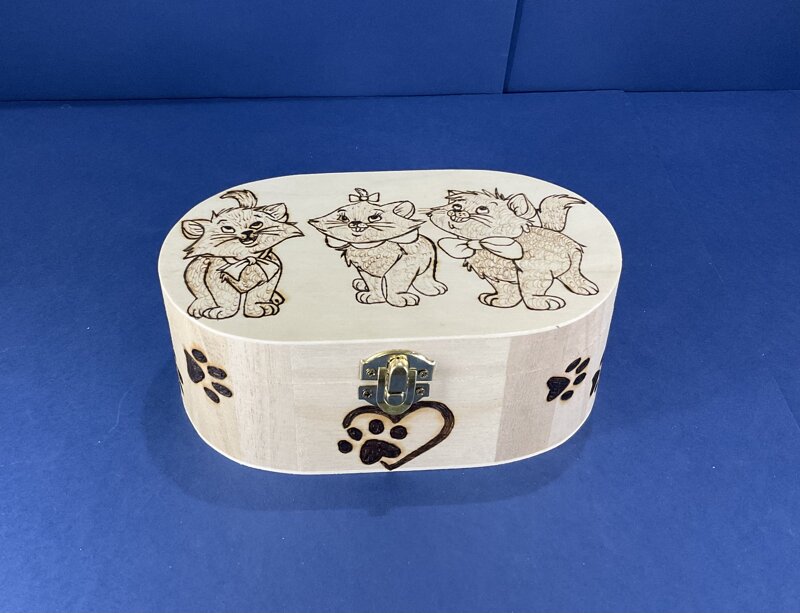 cofanetto legno ovale disegno gattini con chiusura metallica