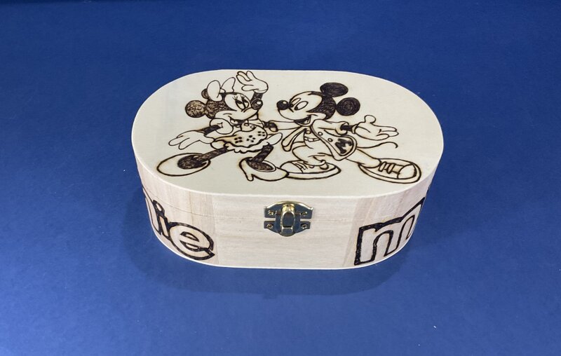 cofanetto legno ovale disegno cartoni animati con chiusura metallica
